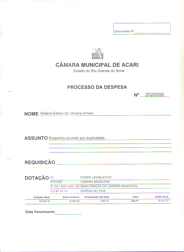 Anexo referente a anulação do empenho de numero 2020004, no qual o mesmo foi anulado por motivo de duplicidade de empenho.